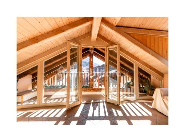 Il secondo livello mansardato open space è adibito a salotto, studio e camera da letto con travi a vista in abete sbiancato. Vetrata a tutta parete a sud, poggiolo e grande abbaino.