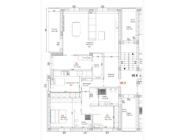 La zona notte offre tre camere da letto e due bagni finestrati, oltre a disimpegno, ingresso e comoda dispensa.