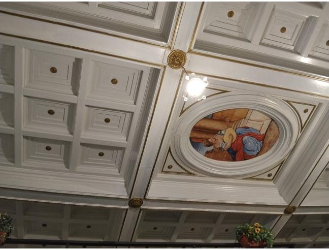 No agenzia. Il salone è dotato di un alto soffitto in legno bianco e oro a cassettone.